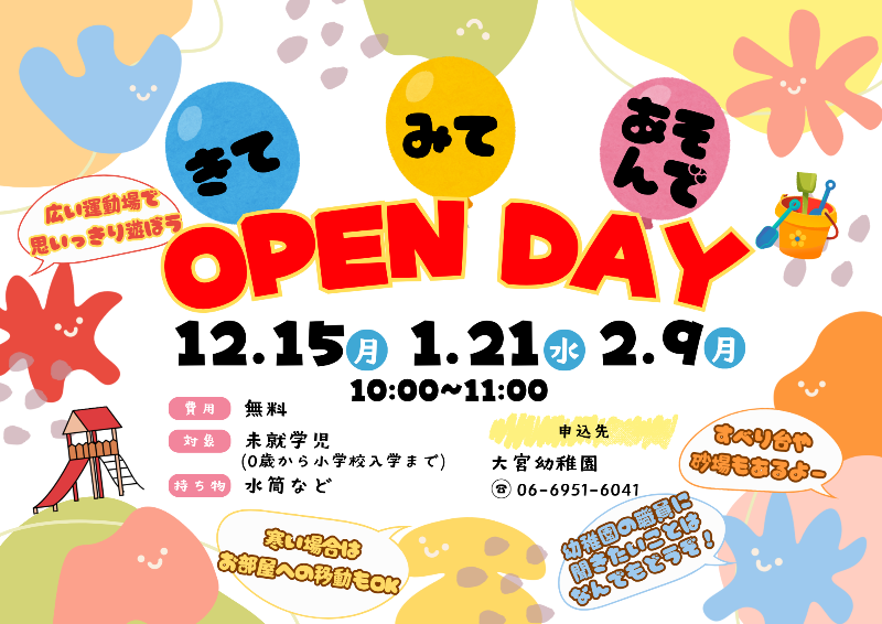 - OPEN DAY 開催!未就園児のみんな待っています★